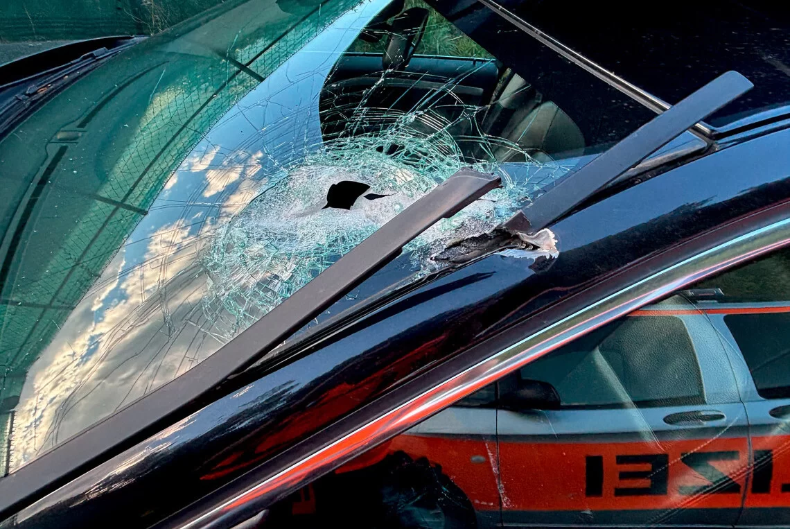 Ein Gegenstand, der von der Ladefläche eines Lieferwagens fällt, beschädigt die Frontscheibe eines Personenwagens. [Bild zVg]