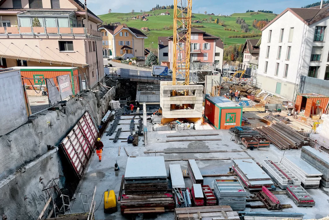 Die Bodenplatte des zukünftigen Untergeschosses in der Einstellhalle ist bereits fertiggestellt.