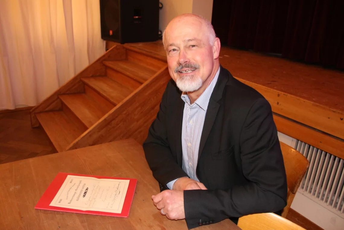 Dr. Jürg Schmutz mit einer Original-Gründungsaktie von 1872 der Jura-Gotthard-Bahn.