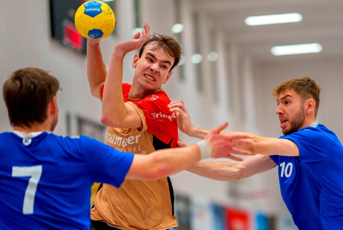 In Bedrängnis setzt SG-Ruswil-Wolhusen-Spieler Noah Bürli zum erfolgreichen Torwurf an. [Bild rb]