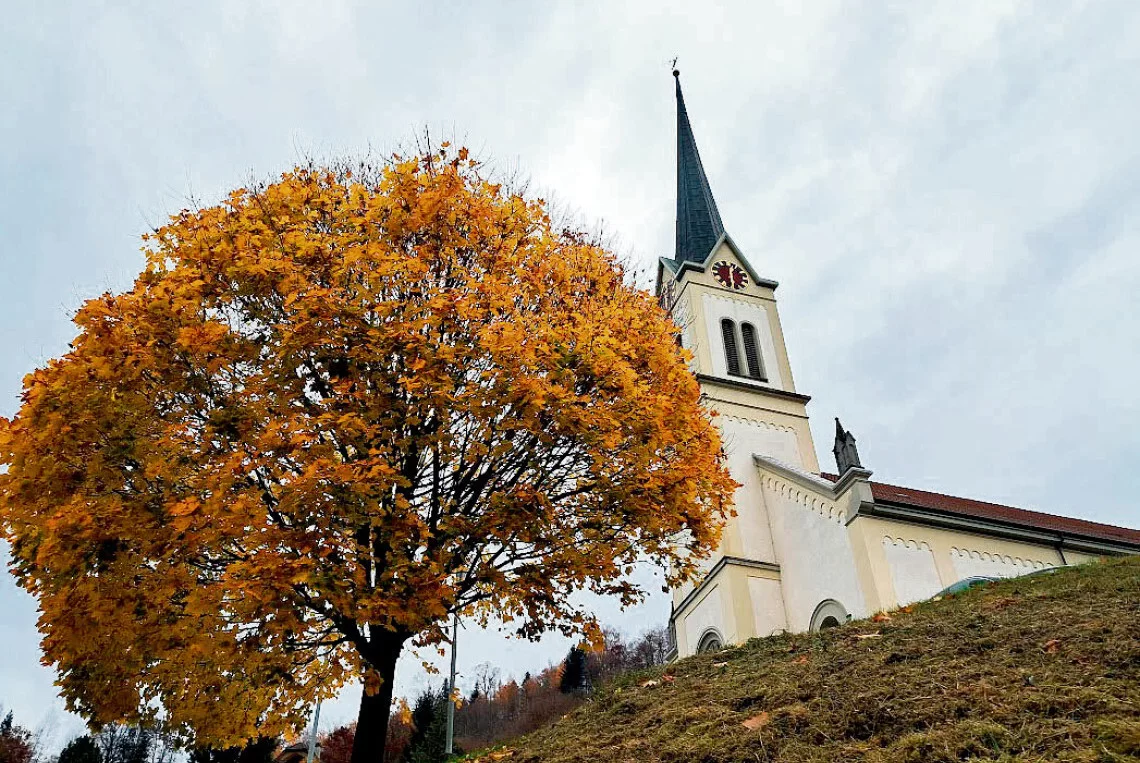 Die Pfarrkirche St. Andreas im Herbst 2025. [Bild zVg]