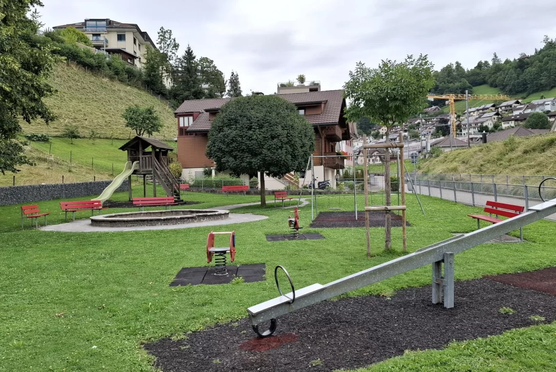Der Spielplatz am Wiggernweg vor Beginn der Sanierungsarbeiten – ab dem 18. August 2025 wird er in einen naturnahen Spielraum umgestaltet.