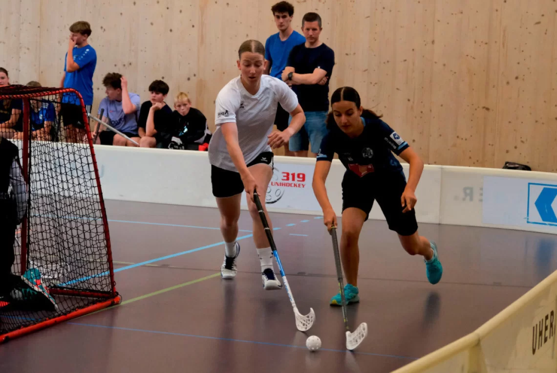 Kampf um den Ball beim Unihockey. [Bilder lt]