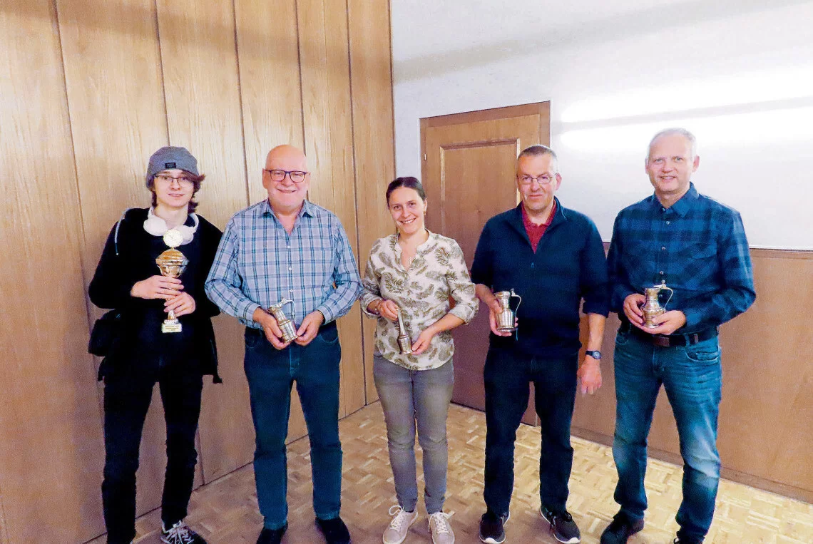 Die Schützenkönige freuen sich über ihren erfolgreichen Saisonabschluss (von links): David Emmenegger, Markus Portmann, Erika Marti, Heinz Hafner und Bernhard Schmid.