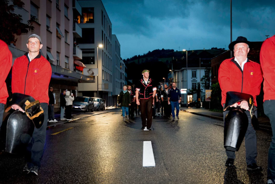 Neueidgenosse Dominik Zangger beim Einzug durch das Wolhuser Dorf. [Bilder Tobias Meyer]