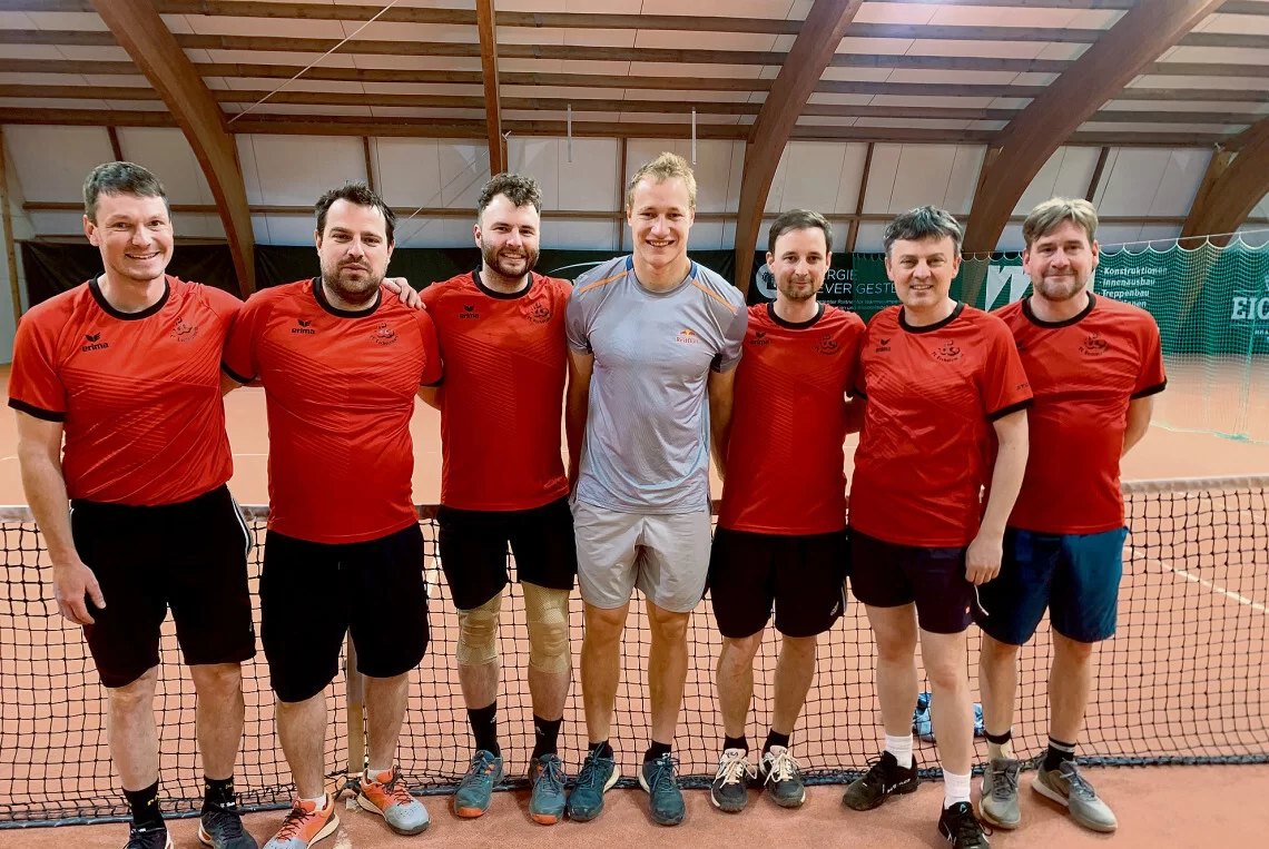 Die 3.-Liga-Mannschaft TC Escholzmatt mit Gastspieler Marco Odermatt vom TC Stansstad, (von links): Dominik Felder, Bruno Jakob, Patrick Stadelmann, Marco Odermatt, Daniel Arnold, Philipp Saxer und André Zemp. [Bild fz]