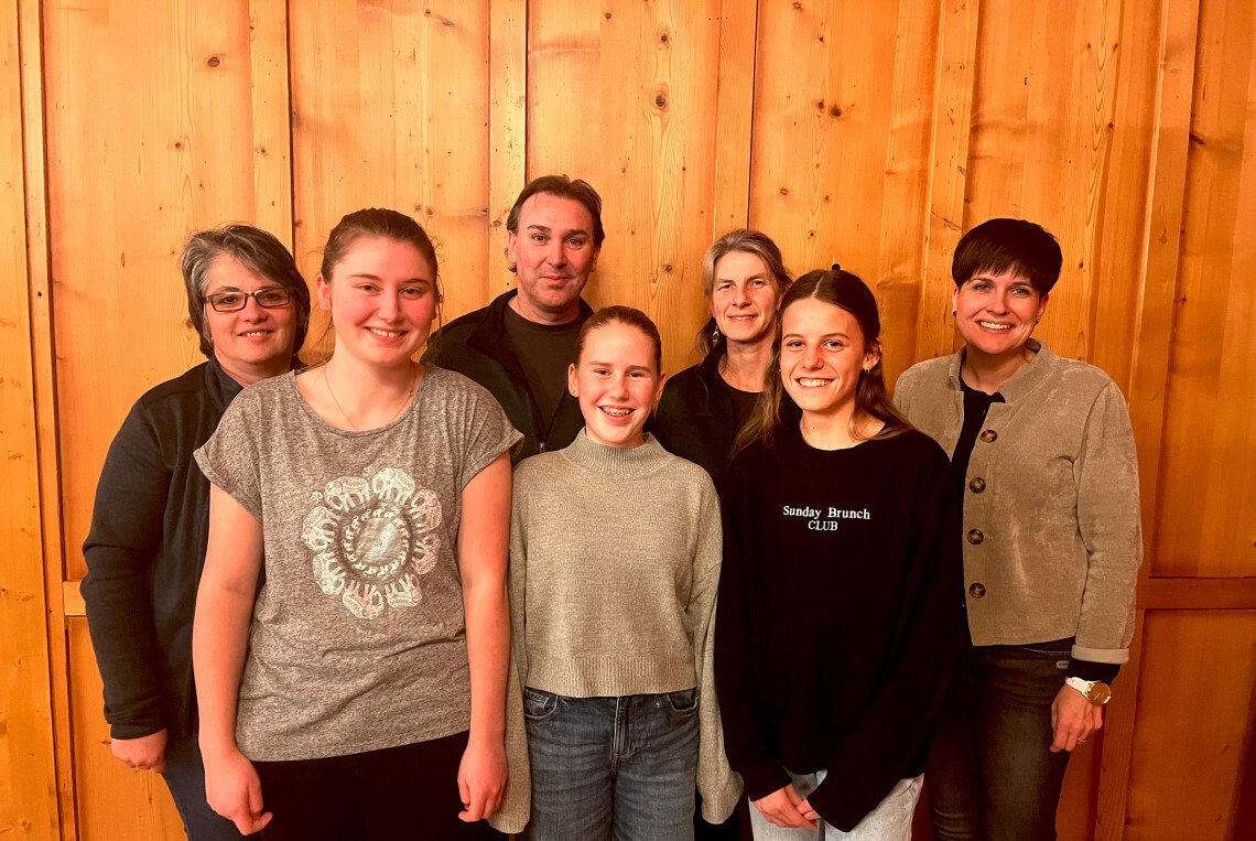 Hinten (von links): Jeanette Stadelmann, Adrian Moser, Claudia Moser, Evelyn Koch. Vorne: Die Neumitglieder Anja von Bergen, Anna Wallimann, Helena Birrer. [Bild jb]